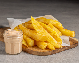 Avec nos délicieuses sauces maison – au choix : Burger – Cocktail – Andalouse – Ketchup* – Mayonnaise*